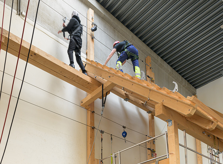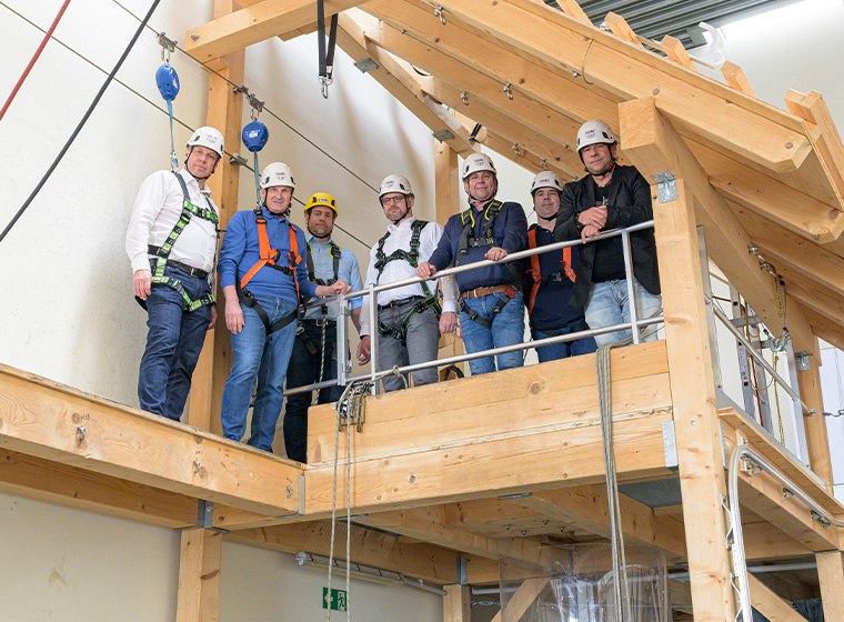 Ralph Griehser, Geschäftsführer der Griehser GmbH, stellte die Inhalte des Lehrgangs vor und führte die Anwesenden durch das moderne Trainingszentrum. Die Gäste erhielten dabei spannende Einblicke in den praktischen Teil der Schulungen. Gezeigt wurden unter anderem die richtige Anwendung der persönlichen Schutzausrüstung gegen Absturz sowie verschiedene Sicherungstechniken für Arbeiten am Dach.